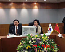 正在韓國訪問的中國總理朱镕基和夫人勞安19日到三星電子參觀高新技術。中新社記者:王曉暉 攝