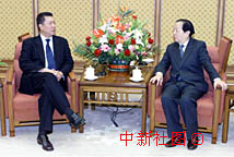 中國國務(wù)院副總理錢其琛18日在北京中南海會見前來述職的澳門特別行政區(qū)行政長官何厚鏵。中新社記者:毛建軍 攝