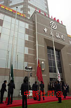 中國銀行澳門分行總經(jīng)理朱赤等150名中高層人員20日在中銀大廈外舉行升旗禮。這是中國銀行在澳門舉行的第二次升旗儀式。中新社傳真洪少葵攝