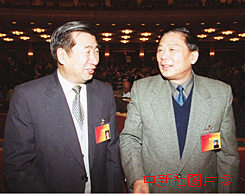 新任江蘇省委書記回良玉(左)和新任安徽省委書記王太華原是安徽省的同事,十日列席九屆全國人大三次會議時老友相逢,格外親切。作者:李剛