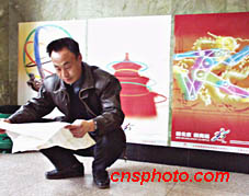 申辦2008年奧運(yùn)之風(fēng)二月下旬吹遍了北京每一個(gè)角落。圖為王府井大街北京百貨大樓內(nèi),也有不少北京申奧招貼畫。中新社記者 鄒憲 攝