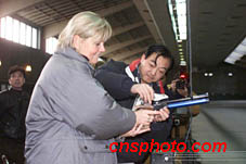 2月23日下午,國(guó)際奧委會(huì)評(píng)估團(tuán)員到北京射擊場(chǎng)考察,國(guó)際單項(xiàng)體育組織代表埃爾斯·弗里斯曼在奧運(yùn)冠軍中國(guó)著名射擊教練許海峰的指導(dǎo)下一試身手。作者:趙彤杰