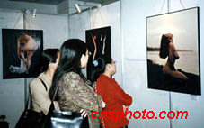 許多女性結伴觀賞海南二月舉辦的首次人體攝影藝術展。中新社圖 莫成雄 攝