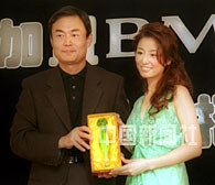 紅遍內地、香港及臺灣的藝人林心如28日在香港、臺灣媒體的見證下,簽約成為BMG唱片公司旗下歌星,BMG唱片公司崔震東先生并向林心如贈送一個琉璃如意,藉此祝福她的演藝事業更圓滿如意。中新社傳真 鄧慶樂 攝