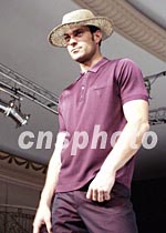 以真實與現代感為主題的夢特嬌二○○一年春夏時裝展示會三十日在上海舉行,該展示會推出了今夏男裝時尚色彩,包括紫紅、梅紅、土黃、駝色等,表達奔放和自由的情感。中新社記者 潘索菲 攝
