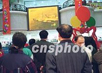 北京市民5日聚集在一家商廈內(nèi)的巨幅電視屏前,密切關(guān)注被美機(jī)撞毀的中國軍用飛機(jī)飛行員下落的最新消息。中新社記者 王瑤 攝