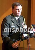 美國駐華使領館官員席樂高八日凌晨二時在海口文華酒店,出席海南省外事僑務辦公室舉行的新聞發布會,簡要通報與偵察機機組人員第三次見面的新聞。中新社記者 賈國榮 攝