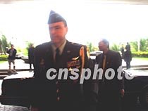 美國駐華使館武官席樂高準將十二日凌晨秘密離開海口文華大酒店,送別美方機組人員后又回到酒店。中新社記者 莫成雄 攝