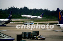一架美國租用的客機十二日凌晨七時三十九分從中國海南省海口市美蘭機場起飛離地,搭載美國軍用偵察機的機組人員離境回國。中新社記者 賈國榮 攝