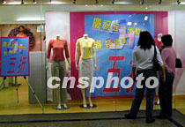 香港一家服裝連鎖店在“五一”國際勞動節前夕,推出優惠價格促銷新上升的夏裝。中新社圖 洪少葵 攝