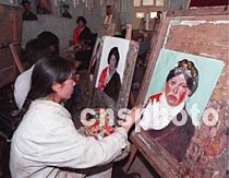 圖:藏族學生進行油畫創作