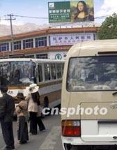 拉薩街頭的現代氣息日漸濃厚,達芬奇名畫中帶著神秘微笑的蒙娜麗莎,被印制在陶瓷制品上,豎立的街頭。中新社記者 滿會喬 攝