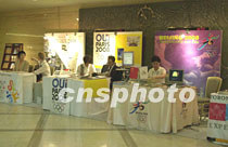 第三屆東亞運(yùn)動(dòng)會(huì)上的另一場(chǎng)較量是申奧,不光是北京和大阪,巴黎和多倫多也不放過機(jī)會(huì)。四城市在各國(guó)和地區(qū)代表團(tuán)部下榻的飯店大廳一字?jǐn)[開,爭(zhēng)相宣傳各自的申奧工作。中新社圖 陶光雄 攝