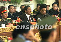中國紀念西藏和平解放五十周年座談會五月二十三日在拉薩舉行,全國人大常委會副委員長帕巴拉·格列朗杰(右二)、西藏自治區人大主任熱地(右三)等出席座談會。中新社記者 滿會喬 攝