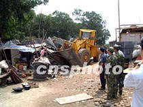 在珠海的一些部隊營區(qū)附近有不少“三無”人員搭建了違章建筑,種菜養(yǎng)豬,嚴重地污染了周邊的環(huán)境。珠海市有關部門二十四日采取聯(lián)合行動,拆除了唐家、炮臺山、駐澳部隊珠海港周邊的違章建筑,并將在這些地方進行綠化。中新社圖 冒韙、石頭 攝