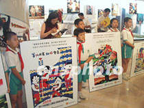 由國家環保總局宣教中心組織評選的全國中小學生環保公益廣告優秀作品,4日贈送給北京奧申委,表示中國中小學生對北京申辦奧運的支持。中新社圖 潘旭臨 攝