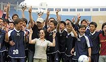 ![]() 歌手高崎6月6日下午參加鳳凰衛視申奧車隊的“明星隊”,準備與陜西國力足球隊一比高低。魏孝明 攝