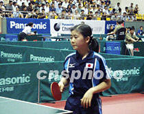 2001中國乒乓球大獎賽六月六日至九日在海口舉行。本次大獎賽年齡最小的運動員是日本運動員福原愛,年僅十二歲。她在七日的第二輪比賽中以一比三負于中國的白楊。中新社圖 莫成雄 攝