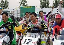 圖:全國公路摩托車錦標賽的車手為申奧加油