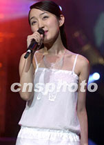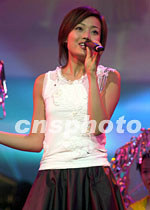 “同一首歌──走進澳門”演唱會十二日晚在澳門文化中心舉行,來自中國內地、香港、臺灣、澳門的眾多新老歌星同臺演出,吸引眾多觀眾。圖為香港歌星容祖兒在演唱會上演唱。中新社傳真 宗金柱 攝