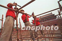 圖文:迎“三高”演唱會(huì) 紫禁城開始“整容” 2001年06月15日 07:34 ![]() 建筑工人連日在北京紫禁城午門前廣場搭臺(tái),為六月二十三日世界三大歌王的演唱會(huì)抓緊施工。中新社記者 史利 攝