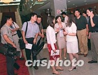在北京的中外媒體記者三日下午在中國外經貿部談判大樓采訪“中日貿易磨擦問題正式磋商”。中新社記者 鄒憲 攝