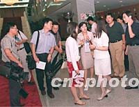 在北京的中外媒體記者三日下午在中國外經貿部談判大樓采訪“中日貿易磨擦問題正式磋商”。中新社記者 鄒憲 攝