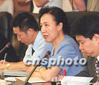 中國代表團團長郭莉七月四日在北京外經貿部就中日貿易爭端與日本代表團進行第二天的會談。中新社記者 鄒憲 攝