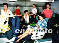 由香港貿易發展局主辦的「香港時裝節春夏系列2002」將于7月10日在會展中心舉行,準備在開幕式上表演的模特兒在布置成機艙的舞臺上,演繹11名香港著名設計師的最新時裝作品。中新社圖