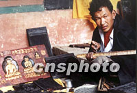 圖:拉薩哲蚌寺雕刻經板的手藝人