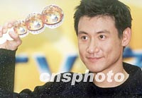 2001CCTV-MTV音樂(lè)盛典獲獎(jiǎng)歌手二十日晚在京舉行頒獎(jiǎng)儀式。張學(xué)友獲亞洲年度最杰出男歌手獎(jiǎng)。中新社記者 錢(qián)興強(qiáng) 攝