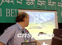 中國社科院考古研究所研究員王仁湘,二十六日在2001年北京藏學討論會上向中外專家學者作題為“西藏瓊結吐蕃王陵勘測與研究”的學術報告。中新社記者 李剛 攝