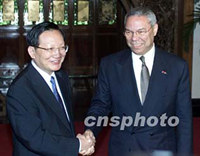 組圖:中國外長唐家璇與美國國務卿鮑威爾會談