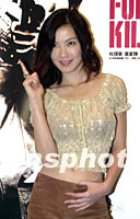 影星林熙蕾1日在香港出席電影《全職殺手》記者會,她擺出一副開槍的模樣,配合影片宣傳。中新社圖 鄧慶樂 攝