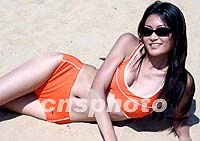 正在青島舉行的戴安娜2001世界精英模特大賽中國預(yù)選賽暨金沙灘模特大賽,十一日在金沙灘景區(qū)拍攝外景。圖為一名身穿泳裝的模特在沙灘上拍照。 中新社記者 錢興強(qiáng) 攝
