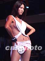參加在青島舉行的戴安娜2001世界精英模特大賽中國預選賽的模特選手,十二日舉行一場別開生面的“時裝創意展示”。圖為一名女模特身穿一款自創性感裝。中新社記者 錢興強 攝