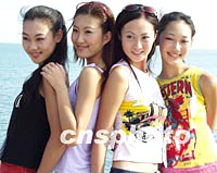 戴安娜2001世界精英模特大賽中國預選賽暨金沙灘模特大賽十二日在青島金沙灘進行外外景拍攝。圖為青春亮麗的模特新秀。中新社記者 錢興強 攝