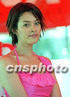 在泰國佛統市國際摩托車賽場,一名發型與面孔酷似香港影星梁詠琪的本地女孩,贏得人們的注目和喜愛。中新社記者 趙振清 攝