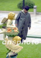 一名環(huán)境工人在大連金石灘國際會(huì)議中心整理綠地和清潔西洋雕塑,以迎接APEC高官會(huì)議八月中旬在這里舉行。大連已被國際組織評(píng)為世界環(huán)境保護(hù)五百強(qiáng)城市之一。中新社記者 賈國榮 攝