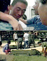 圖文:脫離虎口的中國人質王勝利親述生死瞬間 2001年08月22日 09:25 ![]() 中新網香港8月22日消息:據香港文匯報報道,21日下午兩點過后,脫離虎口的王勝利在中國駐菲律賓大使王春貴和武官張玉河大校的陪同下,乘坐插著中華人民共和國國旗的黑色轎車緩緩駛進中國大使館,受到等候已久佟曉玲參贊等使館館員的熱烈歡迎。 踏進使館等于回到了自己的家里。在使館休息廳里,菲律賓方面的醫生為王勝利檢查了身體。除了腳踝在逃跑時扭傷有些疼痛外,王勝利的身體和精神狀態都很好。由于飛機上沒有提供午餐,使館早已為王勝利準備好了午餐。經過一個多星期的驚嚇和磨難后,王勝利終于在使館狼吞虎咽起來。 王勝利以及張忠義和薛興在當地一名姓林的華人陪同下,于八月十二日前去營救先前被綁架的張忠強。但善良的他們被不守信用的綁匪扣押。綁匪打一槍換一個地方,他們每隔二三天搬一個地方。在變換地方的行軍中,綁匪用手鎗威脅他們老實一些。但在被綁的其它時間,綁匪對中國人質態度還不錯,有飯讓王勝利等人先吃,也不打罵他們,盡管領頭的綁匪有時對他們耍耍威風。 被綁的最初兩天,王勝利等人情緒非常低落,整天愁眉苦臉,唉聲嘆氣。每當想起只有九歲的女兒時,王勝利的腿都發抖。幾天后,他們開始接受并面對殘酷的現實,因為想得再多也是不管用。 十八日上午,他們的駐地突然響起密集的槍聲,綁匪和王勝利等中國人質嚇了一跳。原來四個班的政府軍接到線民的舉報后,前來圍剿綁匪和營救中國人質。政府軍同大約六十多名穆斯林綁匪打了起來。 中國人質本來商定好風雨同舟,要逃大家一起逃,而且往一個方向逃。可是突如其來的槍聲響起后,大家本能地乘機各奔東西南北。王勝利往山上的樹林里逃,張忠強和薛興往橡膠林里逃。王勝利在國內當過兵,經驗比較豐富。他逃出一段距離后,馬上一個魚躍跳進路邊的一個土坑,躲過了來往的子彈。在逃跑中,他把腳扭傷了,但幸運地被菲律賓軍方救出。 張忠強是于今年六月二十日在菲律賓南部北哥塔巴托省被綁架的。他和薛興逃出很遠一段距離后,被子彈擊中,當場倒在血泊中。由于綁匪熟悉當地地形,他們把張忠強的弟弟張忠義和姓林的華人作為盾牌邊戰邊逃。張忠義目前下落不明,但是肯定在綁匪手里。綁匪目前要求跟張忠義家屬進行談判,并呼吁政府軍減少對他們的軍事壓力。 穿著T恤衫的王勝利看上去非常消瘦,皮膚曬得黝黑。記者伸手歡迎他回到使館。“你今年多大年紀?”我問王勝利。“三十三歲。”“老家在什么地方?”“浙江。”“你現在最想做的是什么事情?”記者又問了這樣一個問題。王勝利除了對同伴的遇害感到傷心外,直言說:“回國看我女兒。我希望能帶她到杭州游玩。”(朱幸福) |