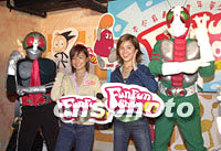 少女組合「TWINS」30日在香港出席FUN FUN SHOW 01圣誕親子樂園記者會,「TWINS」與兩位正派形象的“蒙面超人”在會上作勢擺出戰斗格模樣。中新社圖 鄧慶樂 攝