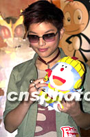 歌星葉佩雯30日在香港出席FUN FUN SHOW 01圣誕親子樂園記者會,手持漫畫卡通明星“叮當”愛不釋手。中新社圖 鄧慶樂 攝