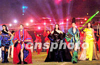 大運會閉幕式三十日晚在北京工人體育場進行最后的彩排,中國名模于娜出演《歷代服飾》。中新社圖 劉殊瑾 攝