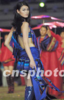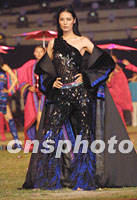 大運會閉幕式三十日晚在北京工人體育場進行最后的彩排,中國名模馬艷麗出演《歷代服飾》。中新社圖 劉殊瑾 攝