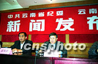 7日上午,中共云南省紀委、省監察廳向新聞媒體通報了新近查處的七名廳級和一名處級官員嚴重違法違紀的經濟案件。通報說,這八名前官員違法的重要教訓是:一些地區部門對官員的監督管理存在諸多薄弱環節和漏洞,權力缺乏有效制約。圖為新聞發布會現場。中新社記者 納家驊 攝