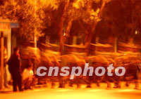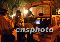 北京武警官兵十一日深夜開始加強美國駐華使館周圍的護衛。初夜時分美國遭受恐怖分子的全面襲擊。中新社記者 賈國榮 攝