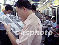 美國遭襲的消息報道后,十二日清晨乘地鐵上班的北京市民,紛紛搶讀有關(guān)消息。中新社記者 錢興強 攝