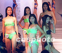 2001新絲路中國模特大賽可采杯北京賽區決賽十一日在北京舉行。圖為參賽選手進行泳裝展示。中新社記者 錢興強 攝