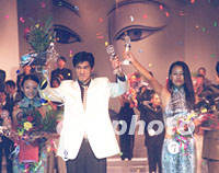 2001新絲路中國模特大賽可賽杯北京分賽區決賽,十一日在北京舉行,男選手周雙健和女選手賈妮妮分別榮獲大賽冠軍。中新社記者 錢興強 攝