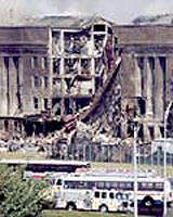 圖文:五角大樓仍在燃燒之中 八百人可能身亡 2001年09月12日 15:55 ![]() 圖為被撞擊后的五角大樓 中新網北京9月12日消息:美國消防隊員正在繼續撲滅五角大樓的大火,五角大樓仍有大團濃煙冒出。盡管使用了數噸水,大火仍在繼續燃燒。 遇難者的數字仍然難以確定。據美國媒體報道,飛機撞上的那部分五角大樓建筑物當時剛進行完裝修,工作人員正在搬入其中。死亡人數可能會高達800人。 在飛機撞入五角大樓時,從洛杉磯起飛的飛機裝滿燃油,使其成為一個真正的燃燒彈。這是五角大樓首次受到恐怖分子的攻擊。 在華盛頓特區,大街上幾乎沒有人活動,商店關門,所有的公共紀念碑都已關閉。 |
